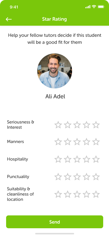 - Tutor Profile View: Aisha taps on a tutor’s profile. The profile is designed to build trust. It includes: